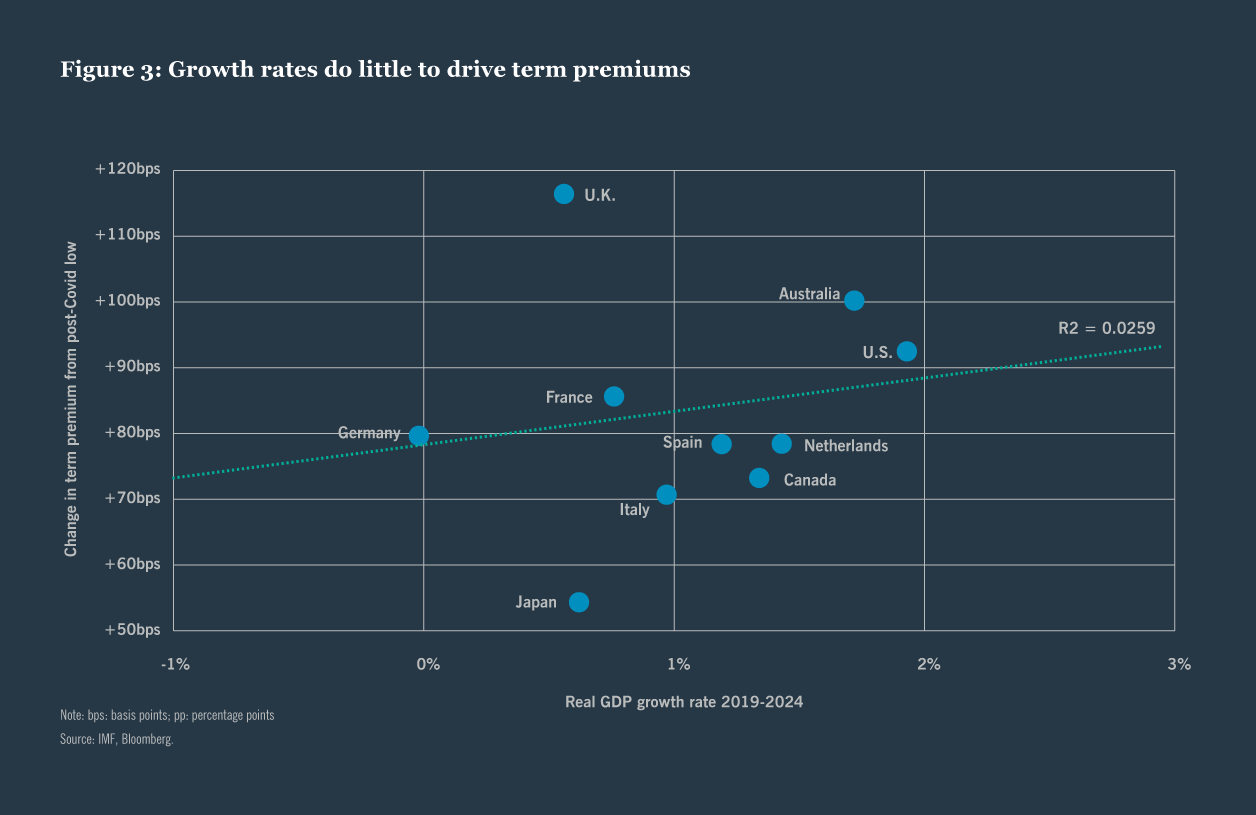 As investors digest rising U.S. fiscal risks, they are also weighing how these dynamics compare globally. In today’s interconnected bond markets, term premiums are not uniform — investors can shift between sovereigns with ease, making fiscal credibility a critical differentiator.